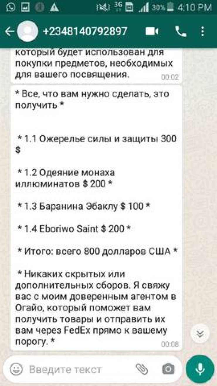 Это ожерелье силы и защиты - 300 долларов, одеяние монаха иллюминатов - 200 долларов, баранина Эбаклу - 100 долларов и Eboriwo Saint - 200 долларов. В итоге стоимость такого набора обходится в 800 долларов.