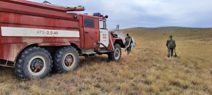 Огнеборцы продолжают тушить природный пожар в Улытауском районе Карагандинской области на предварительной площади 4 000 гектаров.