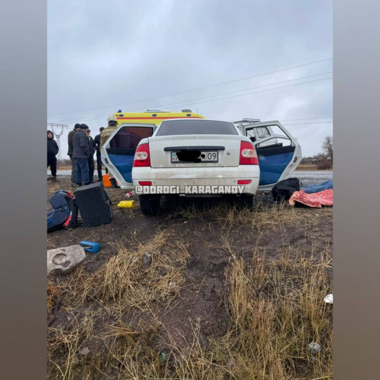 Авария произошла на автодороге Абай - Шахтинск недалеко от поселка Агрогородок. Фотографии с места происшествия распространяются в социальных сетях.