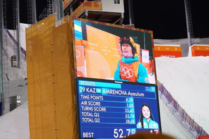 В итоге Амренова заняла 17-е место. Таким образом, она не вошла в десятку лучших по итогам двух отборочных стартов (без учета результатов десяти лучших фристайлисток по итогам первой стадии квалификации).