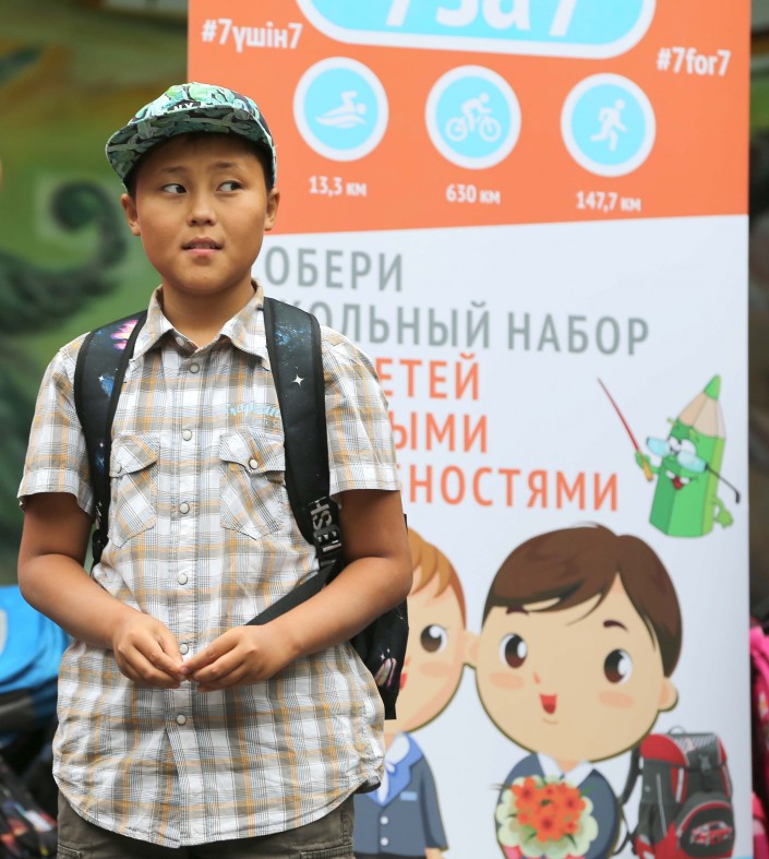 Одновременно с началом спортивной части акции был объявлен сбор школьных наборов (рюкзаков, тетрадей, пеналов, ручек и так далее). На акцию отреагировали неравнодушные казахстанцы. А алматинцы Александра Комлева, Галина Кириян, Алия Жадраева организовали сбор средств и закупку школьных наборов. Откликнулось и несколько казахстанских и зарубежных компаний. Благодаря отзывчивости горожан были собраны наборы для более чем 110 детей с ДЦП, нарушениями слуха, синдромом Дауна, аутизмом и ментальными нарушениями из малообеспеченных семей. Сегодня наборы переданы школьникам.