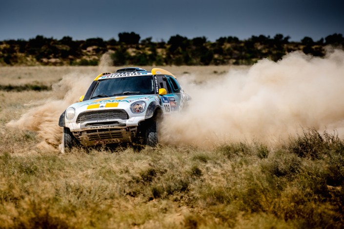 Пыль и пески сопровождали гонщиков на протяжении всего участка, высокая температура воздуха в 44 градуса нагревала машины до предела. Между тем казахстанский пилот Бауыржан Исабаев на автомобиле под номером 109 преодолел самый изнуряющий участок ралли "Шелковый путь" и вырвался вперед.