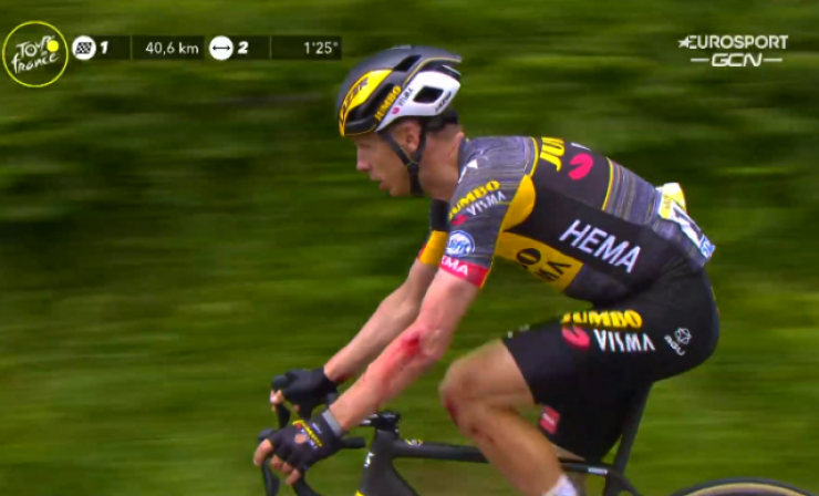 По данным Sport.24tv, больше всего пострадали словенец Примож Роглич и бельгиец Ваут Ван Арт из команды Jumbo-Visma, которые одними из первых попали в завал.