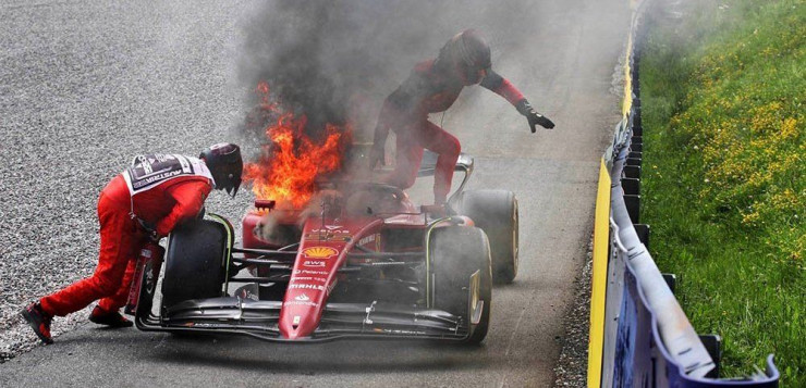 На 58-м круге гонки пилот Ferrari Сайнс шел третьим вслед за партнером по команде Шарлем Леклером и пилотом Red Bull Максом Ферстаппеном. Внезапно он сошел с гоночной трассы. Почти сразу после остановки двигатель болида начал гореть.
