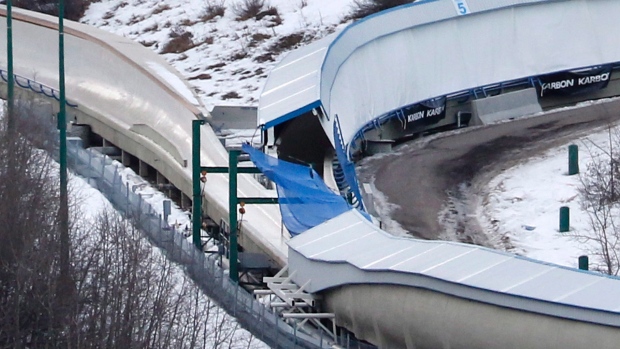 Подростки врезались на своих санях в разделительный отбойник на профессиональной бобслейной трассе. © Canadian Press
