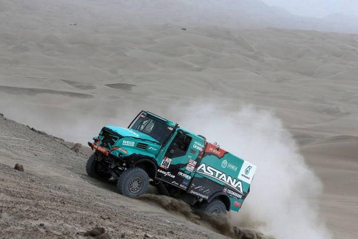 Грузовой экипаж "Астаны" закончил четвертый этап на 11-й позиции. Во время этапа грузовик команды выдержал очень крепкий удар, а также настойчивую борьбу с глубокими перуанскими песками.