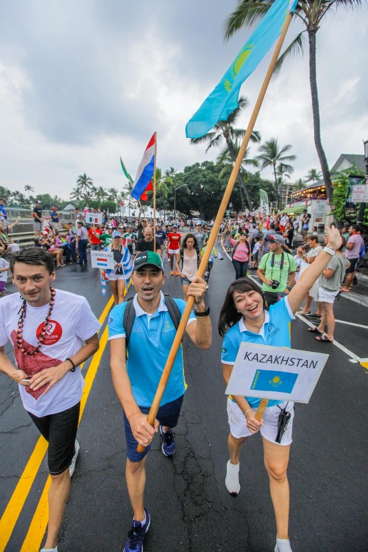 "Вчера прошел Парад наций, и впервые был поднят наш казахстанский флаг здесь на Коне, чемпионате мира IRONMAN! Тысячи спортсменов прошли по центральной улице мекки Ironman под приветствия ведущих, болельщиков и местных жителей. Нам определили место между Японией и Мексикой, правда, их было по 50-60 человек, а нас только трое. Но мы пронесли наш флаг с гордостью! И я счастлив, что мне выпала честь поднять наш флаг здесь, на другом конце Земли, на таком значимом мероприятии!" - написал в своем аккаунте в Facebook Айдын Рахимбаев.