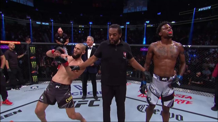 Шведско-чеченский боец Хамзат Чимаев победил американца Кевина Холланда в первом раунде в рамках турнира UFC 279, передает Tengrinews.kz.