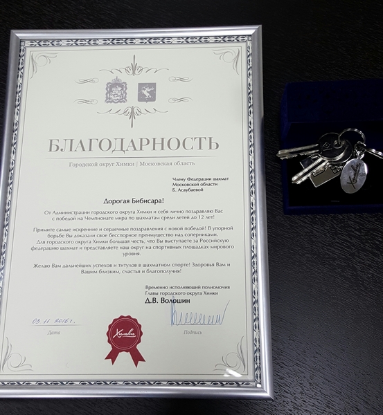 12-летняя шахматистка из Казахстана Бибисара Асаубаева, выступающая за Россию, получила квартиру в Химках в Московской области, сообщает Chess-news.ru.