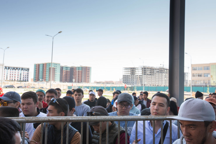 Жители Актау выстраиваются в очередь за билетами на футзал
