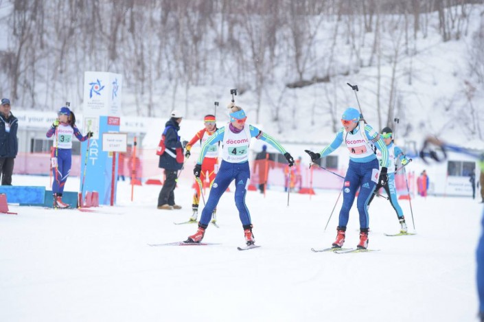 Второе место на эстафете заняла другая казахстанская четверка в составе Алины Райковой, Анны Кистановой, Василия Подкорытова и Антона Пантова. Третьей в соревнованиях стала команда биатлонистов Японии.