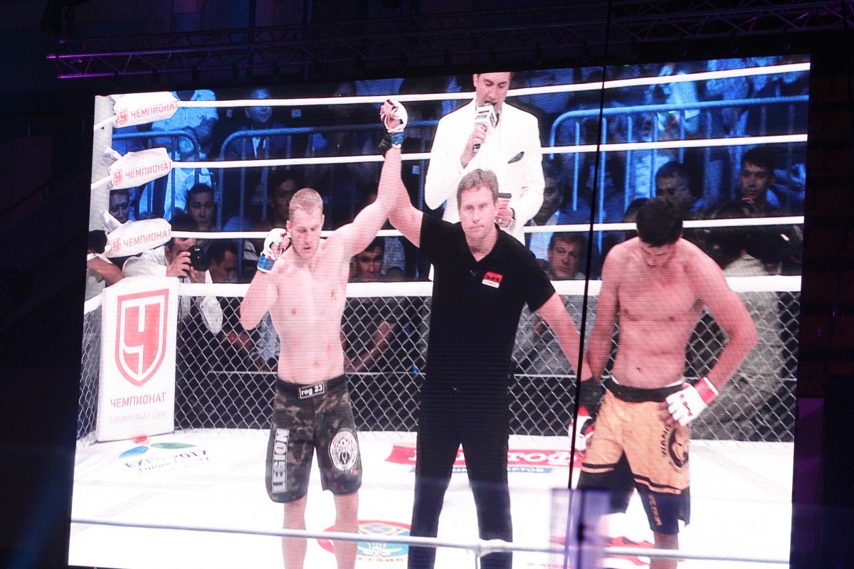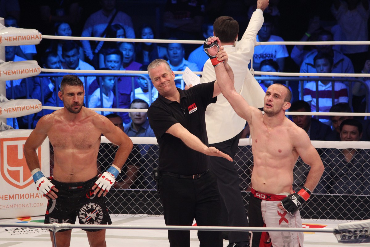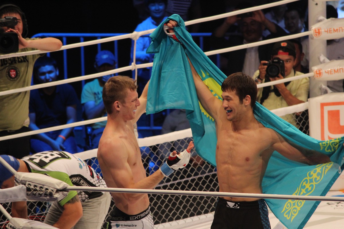 В главном бою вечера сошлись звезды ММА первой величины - россиянин Сергей Харитонов и американец Кенни Гарнер. В ноябре 2014 года эти титулованные супертяжеловесы уже встречались в Пекине и тогда победу отдали Харитонову (поединок был остановлен досрочно из-за рассечения у американца). В Астане россиянин вновь одержал победу, записав на свой счет технический нокаут.