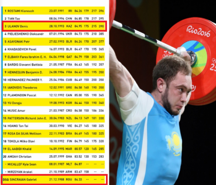 В протоколе соревнований до 85 килограммов указано, что Уланов занял третье место, так как результат румына Габриэля Синкраяна аннулирован, а он сам дисквалифицирован.