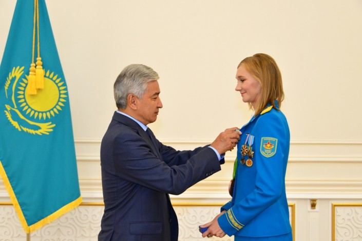От имени Верховного Главнокомандующего ВС РК Имангали Тасмагамбетов вручил спортсменке орден "Парасат". Кроме того, за успешное выступление в Рио Ольге Рыпаковой присвоили досрочно воинское звание "майор" и вручили ценные подарки. "Я хочу поблагодарить всех казахстанцев, Нурсултана Абишевича, Вас, все руководство ЦСКА. Все болели за меня, поддерживали, перед выступлением напутственных слов было много сказано. Служу Республике Казахстан и спорту! Я хочу в дальнейшем выступать на всех мировых аренах, прославлять казахстанский спорт и казахстанскую армию", - выступила с благодарственным словом Ольга Рыпакова.