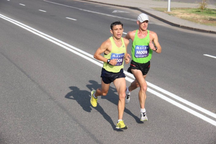 Что касается мужского финиша, то победу в марафоне разыграл интернациональный дуэт - Владислав Прямов из Беларуси и Андрей Петров из Узбекистана. Состязание выиграл Петров, который опередил "союзника" по побегу на доли секунды на финишной ленте.