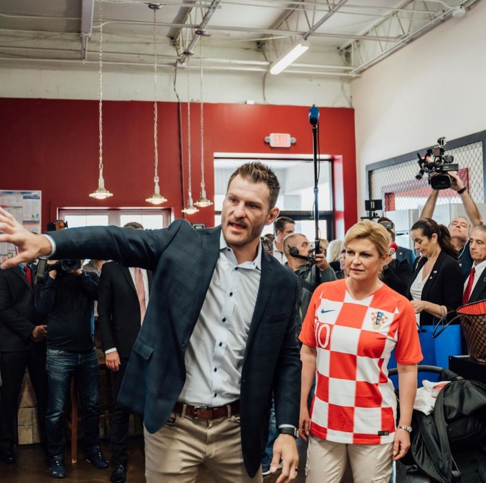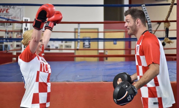 Президент Хорватии Колинда Грабар-Китарович во время дипломатического визита в США приехала в зал к чемпиону UFC в тяжелом весе Стипе Миочичу - американскому бойцу хорватского происхождения. Об этом сообщает FightTime.