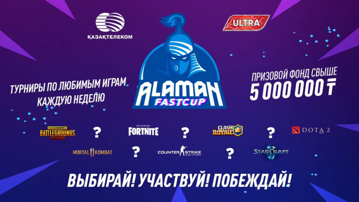 Напомним, что с 17 июля Qazaq Cybersport Federation проводит серию блиц-турниров Alaman FastCup: в ее рамках до конца года состоится 62 турнира по дисциплинам, за которые игроки и зрители проголосуют в соцсетях. Шесть блиц-состязаний серии с призовым фондом в 5 миллионов тенге уже прошли – полмиллиона тенге было разыграно в баталиях по PUBG Mobile (дважды), Clash Royale, StarCraft II, FORTNITE и CS:GO.