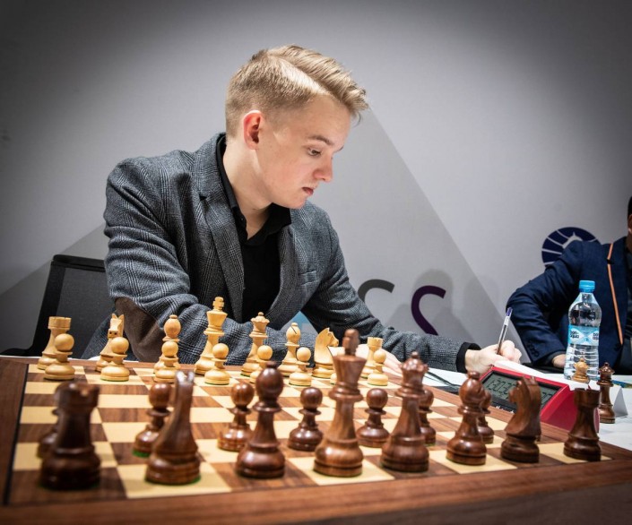 Очень насыщенную боевую партию сыграли на третьей доске Муртас Кажгалеев и восходящая звезда мировых шахмат Вей И. Китайский супергроссмейстер избрал, играя черными, староиндийскую защиту, с которой неплохо знаком и наш гроссмейстер. Муртас всю партию пытался ставить проблемы, на которые китайский юноша все время находил верные решения. Закономерным итогом встречи стала ничья.