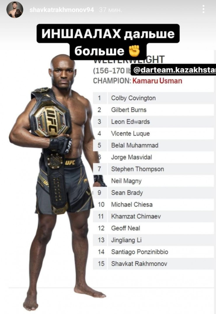 Теперь Рахмонов замыкает топ-15 полусреднего веса. Ранее на этой строчке находился россиянин Муслим Салихов, известный по прозвищу Король кунг-фу.