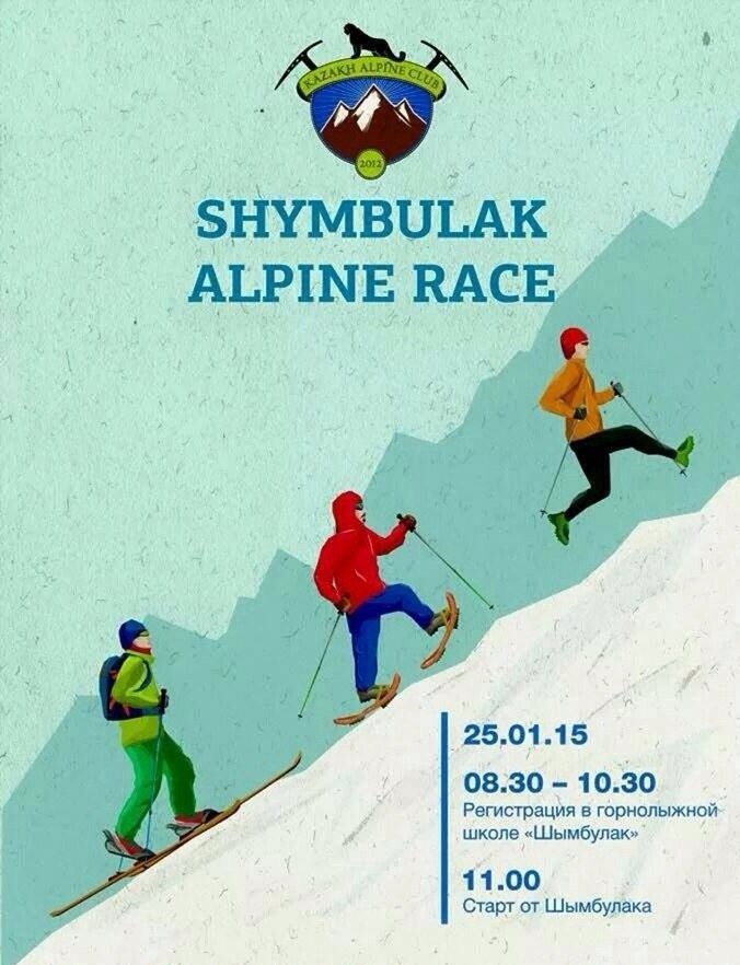 Соревнования по лыжному альпинизму Shymbulak Alpine Race намечены на 25 января 2015 года. Регистрация участников пройдет с 08.30 до 10.00 на горнолыжном курорте. Всего будут представлены три дисциплины: Ski Touring - скоростной подъем на гору на лыжах со специальными креплениями, снегоступинг - скоростной подъем на гору в снегоступах и Sky Running - забег в горы в кроссовках.