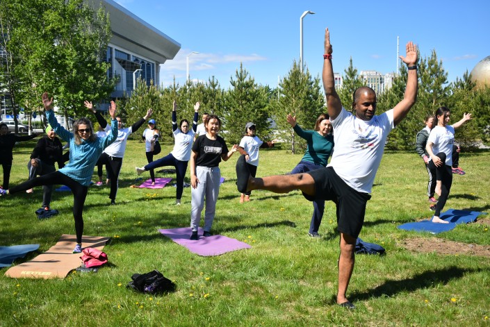 В Нур-Султане начался сезон воскресных тренировок под открытым небом. Первые занятия Fitness Park Nur-Sultan прошли в выходные в Центральном парке и собрали большое количество жителей и гостей города. Солнечная и теплая погода порадовала участников тренировки, которые присоединились к упражнениям под руководством профессиональных инструкторов.