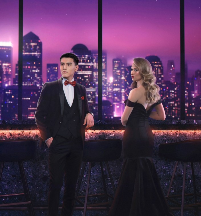 На фоне ночного города февраль представляют призер всемирной зимней Универсиады, участник Олимпийских игр по шорт-треку Еркебулан Шамуханов и чемпионка мира среди юниоров по конькобежному спорту Екатерина Айдова.
