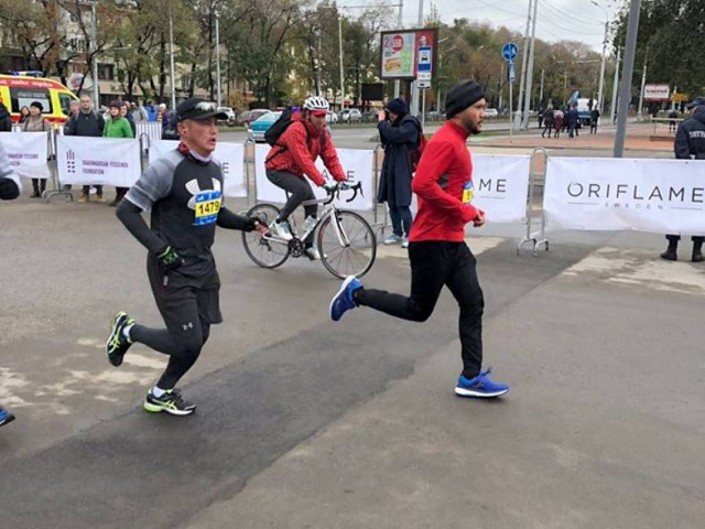 Самым первым дистанцию полумарафона пробежал бегун из Кыргызстана Илья Тяпкин. Он финишировал на отметке 1:05:53. После забега представитель соседней страны отметил гостеприимство нашего города.