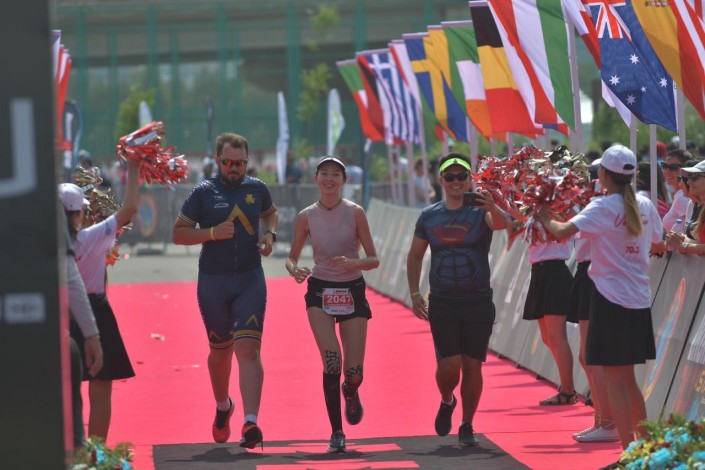 Далее атлеты преодолевали велогонку (90 километров), бег (21,1 километра). Протяженность всего маршрута соревнования составляет 113 километров, или 70,3 мили. Спортсмена, преодолевшего полную дистанцию, называют "Железным человеком".