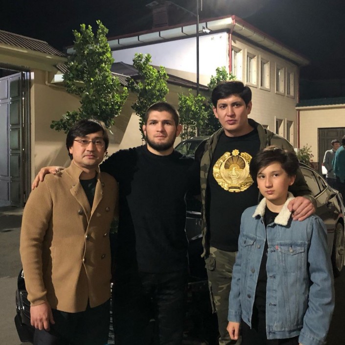 Чемпион UFC в легком весе россиянин Хабиб Нурмагомедов побывал в Ташкенте, где был принят зятьями президента Узбекистана Шавката Мирзиеева Ойбеком Турсуновым и Отабеком Шахановым. Совместную фотографию боец опубликовал на своей странице в Instagram.