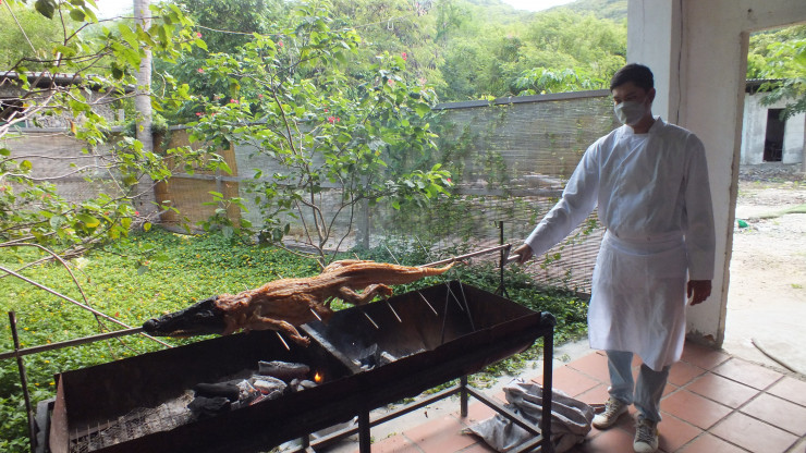Кухня разнообразная. Помимо классической говядины, свинины и баранины здесь подают мясо крокодила, лягушки. Вьетнамская еда не такая уж острая по сравнению с Южной Кореей или Китаем. Но вы можете разбавить блюдо разными острыми специями. Здесь много фруктов, например, лонган, мангустин, рамбутан, черимойя, дуриан и, конечно, кокос и манго. Ежедневно по вечерам делают барбекю из мяса и морепродуктов. С 7 утра до 20:30 еда в двух локациях бесплатная, а в ночное время придется заказывать по меню платно. Ежедневно из отеля два раза есть развозка туда и обратно в город Нячанг, который находится в 40 минутах от отеля.