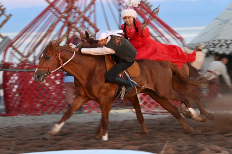 Затем участники встречи посетили культурный центр "Дордой Номад" на Иссык-Куле. Там главам государств показали специально организованные игры кочевников и национальные обычаи и традиции кыргызского народа. Каскадеры продемонстрировали выездку скакунов и другие представления. Лидеры трех стран также ознакомились с работой "Аллеи ремесленников", где была представлена продукция местных мастеров.