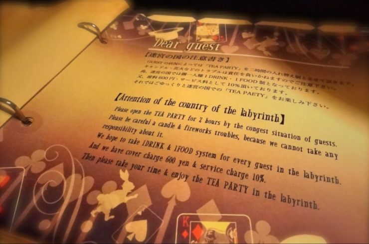 В Токио есть кафе, декорированное в стиле "Алисы в стране чудес". Потолки заведения украшены изображениями игральных карт, есть уголок с белым кроликом в саду. Alice in a labyrinth пользуется большой популярностью у местных жителей и туристов.
