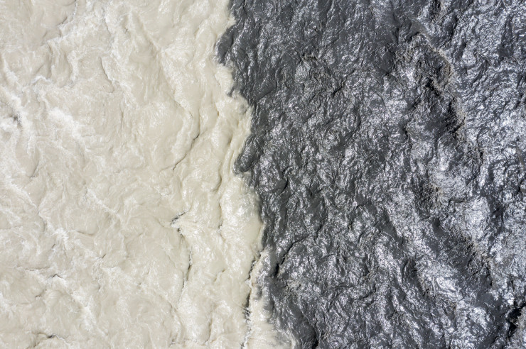 Белая Арагви имеет беловатый оттенок, так как течет по глинистым сланцам и известнякам. А вторая река черного цвета, так как течет по черным сланцам. Слияние образует две параллельные полосы. Граница слияния видна отчетливо, так как в реках разное количество минералов. Реки не смешиваются.