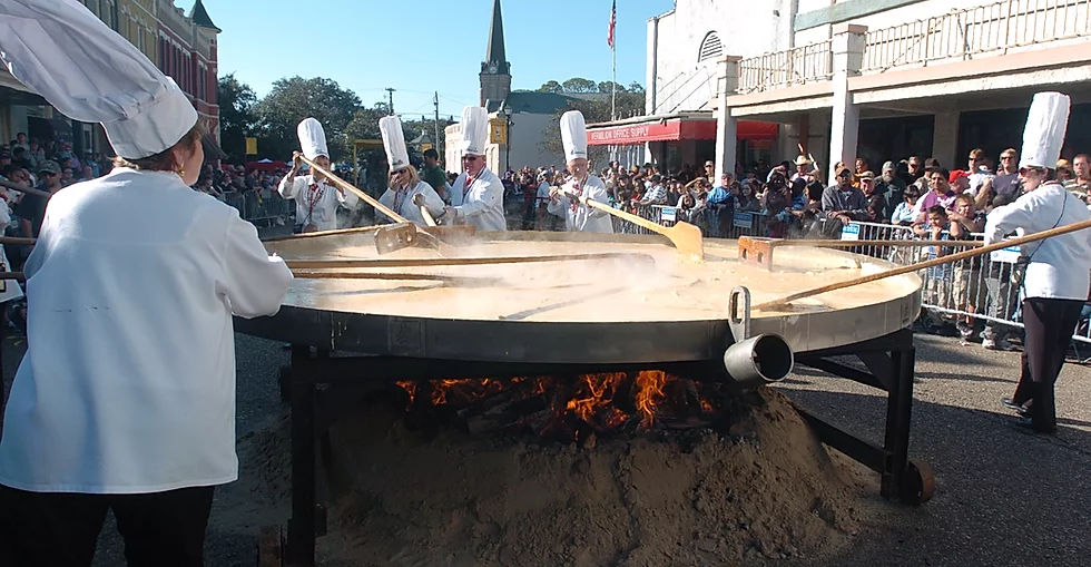 Готовится он на открытом огне, ароматный дымок придает блюду неповторимый вкус. В приготовлении задействованы более 50 поваров, у которых уходит до получаса. Получившийся шедевр бесплатно раздают всем желающим, их обычно насчитывается около 10 000 человек. Фестиваль омлета был снят многочисленными телешоу не один раз и с годами набирает еще большую популярность.
