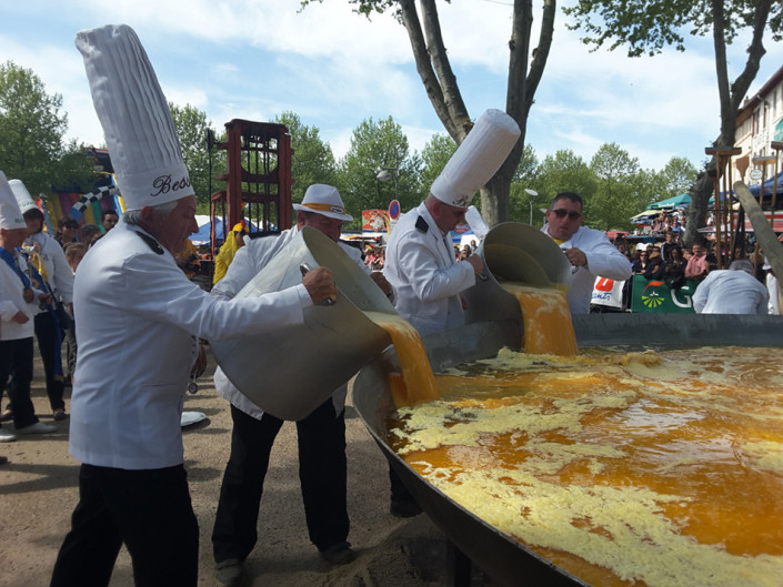 Французы до сих пор отстаивают право считать изобретение этого блюда своим, ведь ставшее интернациональным слово omelette имеет французское происхождение. Поэтому фестиваль в Бессьере ежегодно обретает грандиозный размах, превращаясь в настоящее празднество с ярмаркой и живой музыкой.