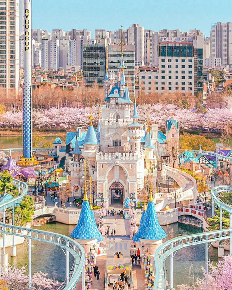 Lotte World долгое время был занесен в Книгу рекордов Гиннесса как "крупнейший крытый парк развлечений", но и сейчас огромный павильон в виде пилюли видно из космоса. По крайней мере, так говорят. Ежегодно парк посещает семь миллионов человек.