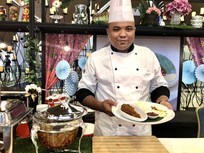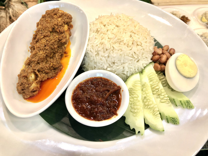 Малайзийскую кухню представляла отбивная курица в сухом кокосе. Приготовление этого блюда занимает более трех часов, это время нужно, чтобы сухой кокос и курица плотно слились и не расплылись в масле. Традиционный малайзийский рис также готовится на кокосовом молоке.