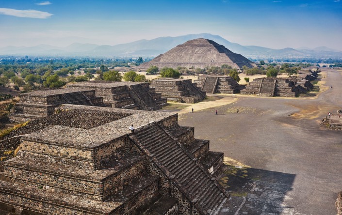 Одним из главных объектов исторического наследия Центральной Америки является древний город Теотиуакан, расположенный примерно в 50 километрах от Мехико. Две тысячи лет назад Теотиуакан был самым большим городом Америки и, скорее всего, столицей влиятельной империи. Наука еще не расшифровала теотиуаканскую письменность, поэтому не ясно, кто его построил и почему покинул. Но прибывшие в XIV веке ацтеки обнаружили гигантские руины и дали городу его нынешнее название - Теотиуакан, что означает "место, где родились боги". На сегодняшний день наверняка известно, что большую часть времени его населяли племена тольтеков, которые известны весьма кровожадной культурой, практиковавшей даже человеческие жертвоприношения.