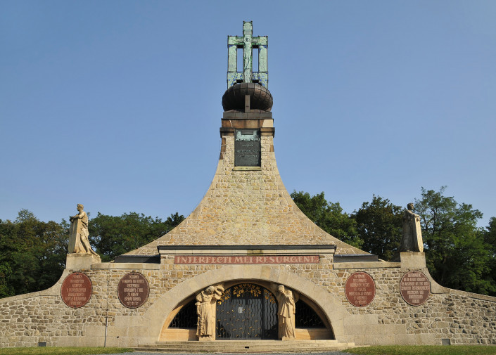 Невероятное сооружение впечатляет своими размерами: огромная скульптура архангела Михаила, над которой высечена надпись "Gott mit uns" ("Бог с нами"), фурии с факелами войны, 12 рыцарей 13-метровой высоты с опущенными мечами, стражи смерти и искусственно созданный водоем перед памятником, символизирующий море слез, пролитых над тысячами погибших. Все это напоминает о страшных событиях, происходивших здесь больше двухсот лет назад, и не оставляет равнодушным никого.