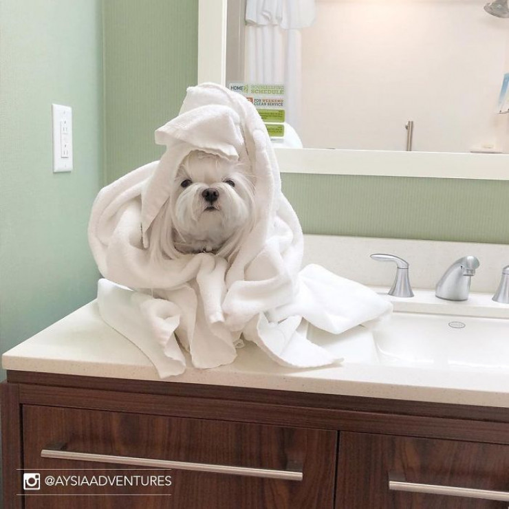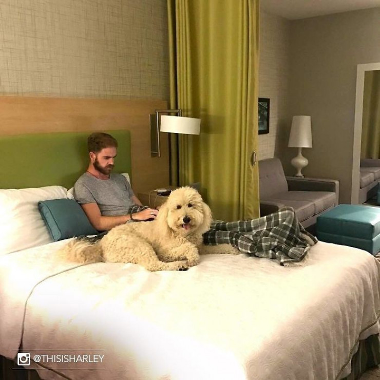 По ее словам, идея такого эксперимента принадлежит представителям отеля. Они даже разрешают взять собаку к себе в комнату.