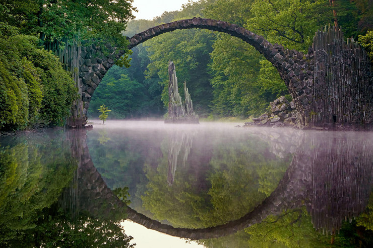 Культовый арочный мост, расположенный в живописном парке Кромлау, является магнитом для туристов. Произведение архитектуры завораживает, создавая собой идеальный круг в отражении неподвижных вод.