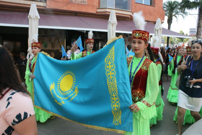 Одна из них произошла и под конец нашей замечательной поездки. Когда в городе Льорет-де-Мар мы заселялись в отель Delamar, я увидел, как в стеклянной двери отеля, выходящей на авеню Just Marlés Vilarrodona, проплыл флаг Казахстана. Это был настоящий сюр. Бросив чемодан в лобби отеля, я выбежал на улицу и попал в пеструю колонну молодежи, одетую в национальные костюмы. Казахстанский флаг стремительно уплывал вдаль. С трудом, но я догнал казахских девушек и сделал прощальное фото в стиле Дали.