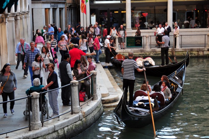 В последние годы знаменитый город на воде испытывает многократный рост турпотока. Из-за этого растет недовольство местных жителей. Венецианские власти с помощью вводимых запретов и правил пытаются хоть как-то облегчить жизнь городскому населению. В 2017 году для туристов был опубликован целый свод правил поведения. Согласно брошюре, в Венеции запрещено останавливаться для еды или питья, кроме специально отведенных зон отдыха и общественного питания, мусорить, окунать ноги в каналы, передвигаться по городу в купальниках или с голым торсом, устраивать пикники в общественных местах, ездить на велосипедах в историческом центре, лежать на скамейках. В ближайшее время в Венеции намерены также запретить сидеть на мостовых и на ступеньках церквей и соборов. За это обещан штраф до 500 евро.