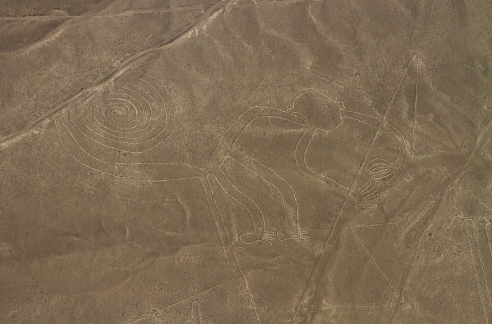Геоглифы Наски, Перу. Наски представляют собой серию гигантских геометрических и фигурных геоглифов, высеченных на плато в пустыне Наска, Перу. Они занимают площадь около 80 километров. Были якобы созданы в период между 200 годом до нашей эры и 700 годами нашей эры. Известно приблизительно 30 рисунков разных животных, около 700 разнообразных геометрических фигур, а также 13 000 полос и линий. Некоторые из них охватывают расстояние в 183 метра. Ученым известно, кем и как сделаны геоглифы Наски, но они до сих пор не знают, для чего. Самая популярная и разумная гипотеза возникновения этих изображений - религиозная. Якобы изображения были сделаны как подношение богам, которые бы смогли увидеть их с небес.