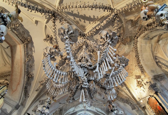 Франтишек Ринт, который был резчиком по дереву, выполняя заказ князя Шварценберга, подошел к делу с большим энтузиазмом. Он использовал останки людей в качестве материала для деталей интерьера и герба Шварценбергов. По приблизительным подсчетам, на это ушло около 40 тысяч скелетов. Главная достопримечательность костницы – грандиозная люстра, сделанная из всех видов костей человеческого тела. Еще здесь можно увидеть скульптуры из человеческих лопаток и ключиц, а также пирамиды из черепов. Ежегодно сюда съезжаются любители хоррор-туризма, чтобы поглазеть на необычный костел. Мало кто отважился бы на посещение Костницы в одиночку, да еще в ночное время, а вот днем здесь постоянно проходят экскурсии.