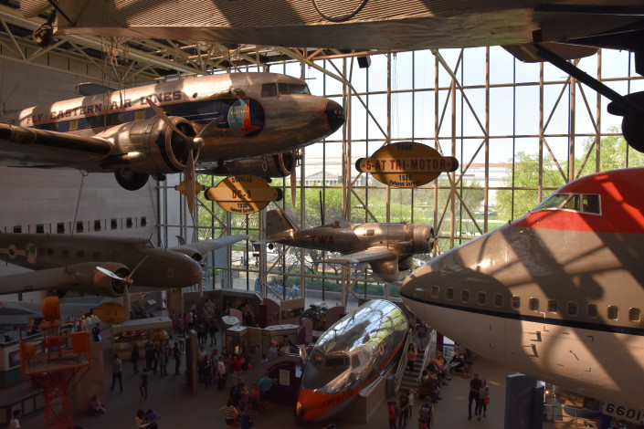 В этом музее собрана самая большая в мире коллекция исторических самолетов и космических аппаратов. Он был открыт в 1946 году. Здесь можно увидеть первый в мире самолет, принадлежавший братьям Райт, космический корабль "Апполон-11", а также другие летательные аппараты. В музее находится более 60 000 самых разных экспонатов, в его медиатеке более 14 000 видео и двух миллионов фотографий, которые рассказывают об истории авиации. В аэропорту Далласа работает филиал этого музея, где вы можете увидеть космический шаттл "Дискавери", а также бомбардировщик Enola Gay, с борта которого в 1945 году была сброшена ядерная бомба на японский город Хиросима. Ежегодно музей посещают примерно восемь миллионов человек, что делает его одним из самых посещаемых в мире.