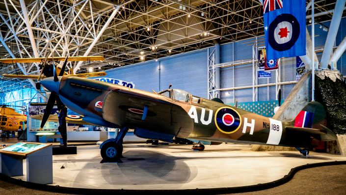 В этом музее собраны экспонаты из Национального авиационного музея в Аплэндс с коллекцией ранней авиации, Канадского военного музея с коллекцией военных летательных аппаратов и техники, и музея Королевских ВВС Канады, где представлены наиболее современные модели. Здесь можно увидеть коллекцию из 130 самолетов со всего мира. Самым известным экспонатом обширной коллекции является "Авро Эрроу", перехватчик конца 1950-х годов. Кроме того, здесь можно увидеть "Канадарм 201", роботизированную платформу управления космического шаттла "Индевор".