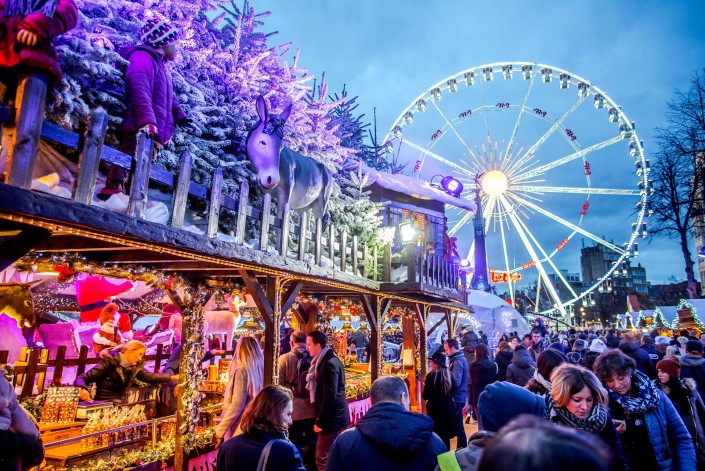 В 2003 году Брюссельский рождественский базар был отмечен британскими туроператорами как "самый оригинальный рождественский базар Европы". Можно смело добавить, что это также самая интернациональная ярмарка: продукцию, выставленную в домиках-киосках на Большой площади и площади Рыбного рынка, привозят из Франции, Австрии, Швейцарии и Ирландии. Помимо покупки рождественских сувениров, стоит попробовать блюда местной кухни, например такие, как моллюски в пряном бульоне и льежские вафли, а также понаблюдать за игрой света на площади Гран-Пляс, посмотреть концерт или выступление хора и покататься на взятых напрокат коньках.
