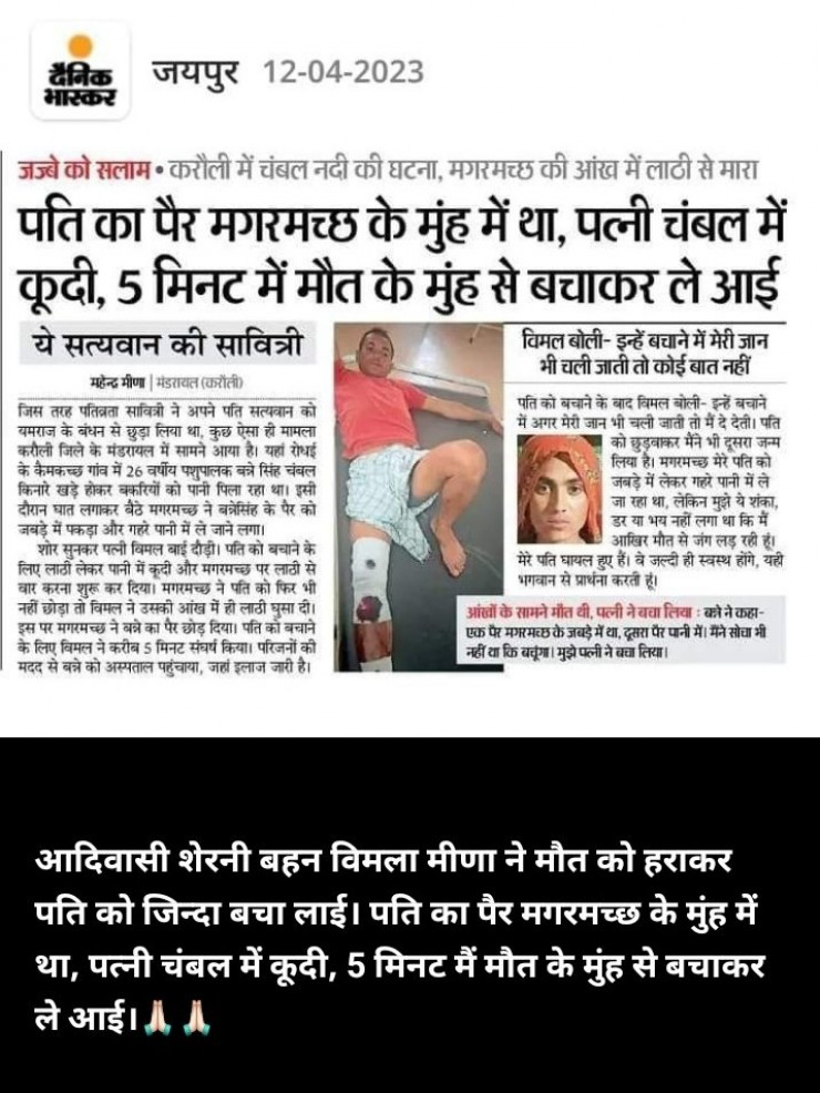 मगरमच्छ के मुँह से अपने पति को बचाने वाली बहादुर विमल मीणा को भी सुनिएगा…सरकार सम्मानित भी कर सकती है…