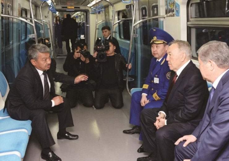 Нурсултан Назарбаев во время открытия станции метро "Сайран" / Фото с сайта spectr.com.kz